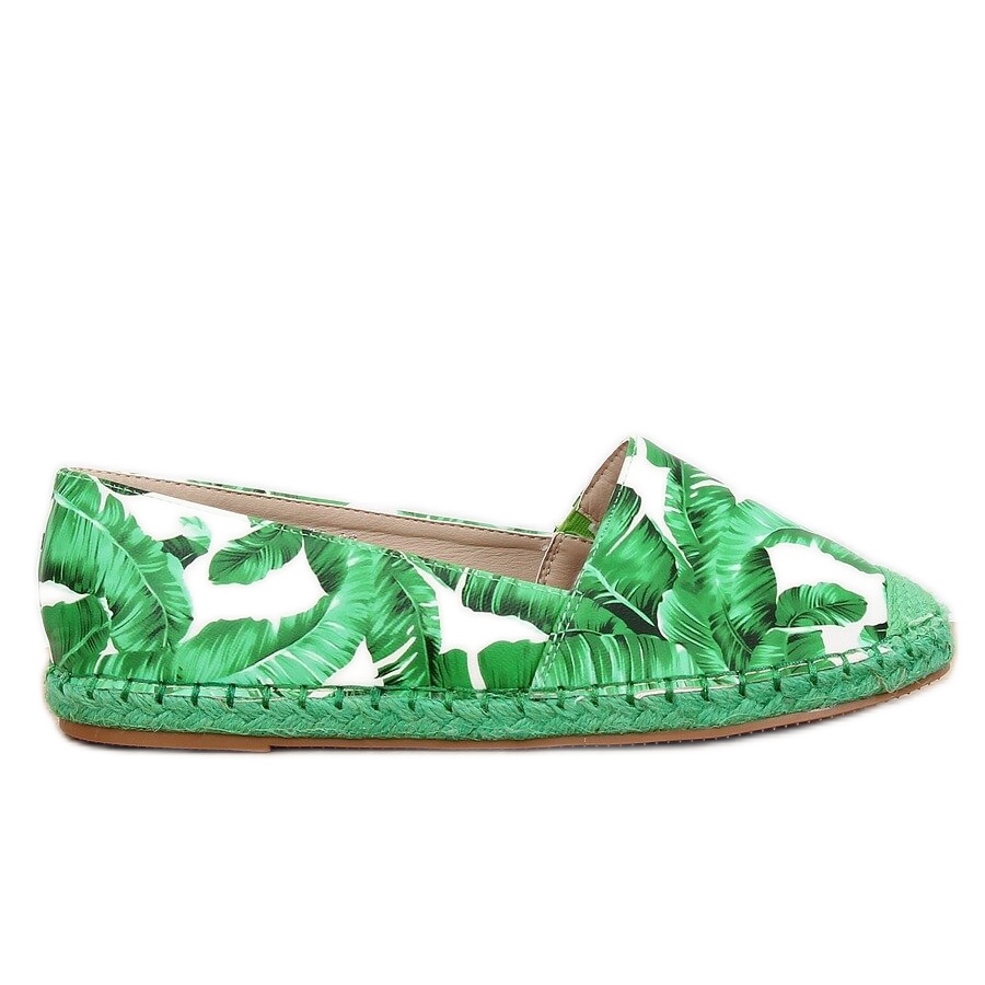 A levélmotívum a talp és a lábujj intenzív zöld színével kombinálva ezeket az espadrillákat a szezon kötelező darabjaivá teszik. Kétségtelenül felkeltik a figyelmet, és minden stílust eredetivé varázsolnak. Felcsúsztatható rögzítésüknek köszönhetően nem csak kényelmesek, de könnyű felvenni is. A kerek orr finomságot ad, a lapos talp pedig stabilitást és kényelmet biztosít a mindennapi viselethez.
