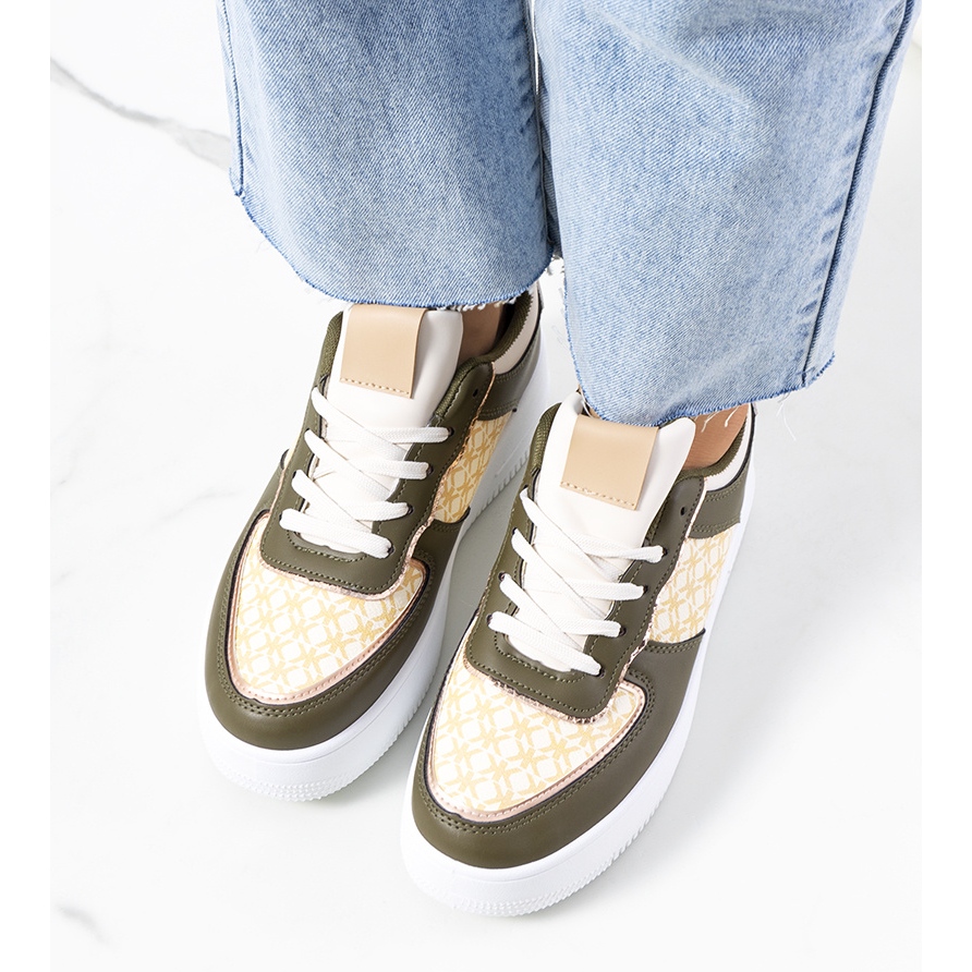 Részletek: Zöld női Manal tornacipő bézs khaki