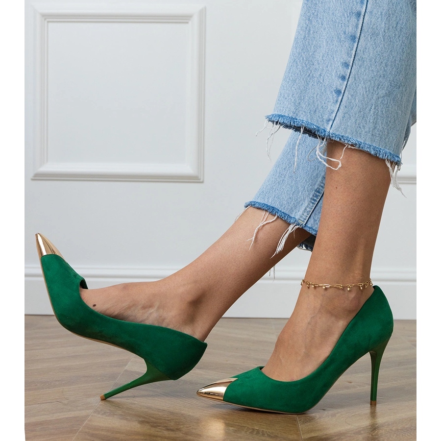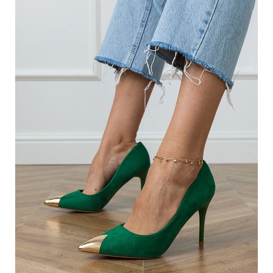 Fedezze fel az egyedi zöld Ecosam szivattyúkat egy FB-290 fém orrmodelljével, amely a divatgyűjtemény szerves részévé válik. Ezek az elegáns cipők kombinálják a klasszikus stílust a modern trendekkel, ami napi és különleges alkalmakkor tökéletes választássá teszi őket.