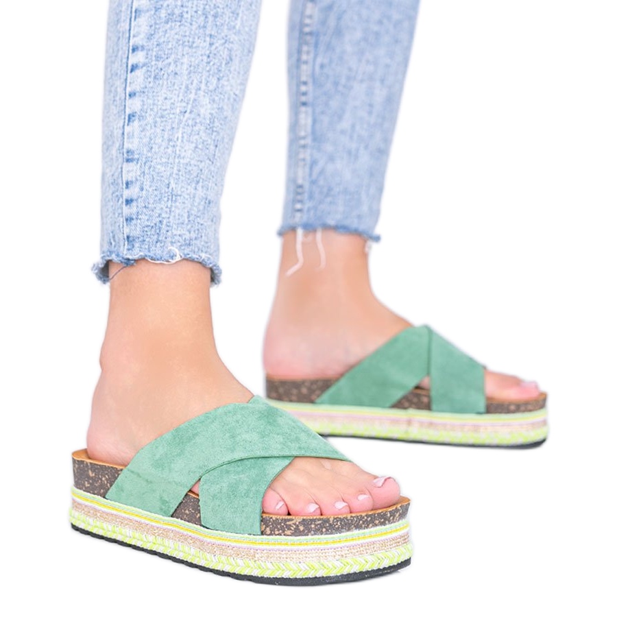A Riri dekoratív talpú zöld papucsok elengedhetetlenek ezen a nyáron, mely frissességet visz minden nyári stílusba! Ezeket a rendkívül stílusos papucsokat gyönyörű, napfényes színek és divatos szabás jellemzi, amely minden bizonnyal felkelti a figyelmet.