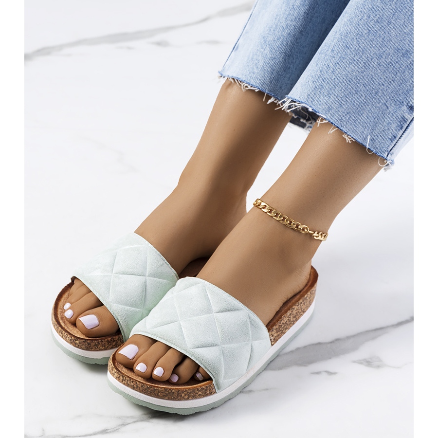 A Green Galts parafa talpú papucsok tökéletes választás a nyári napokra, és egyedi karaktert adnak stílusodnak! A kiváló minőségű öko-velúrból készült papucsok gyönyörű steppelt mintával rendelkeznek, amely nemcsak vonzza a tekintetet, hanem maximális viselési kényelmet is biztosít.