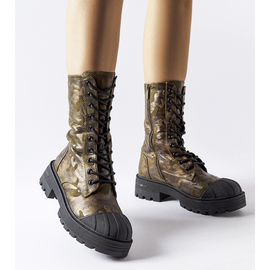 Zöld szigetelt Moro Cardinale munkavállalók - praktikus, meleg és elegáns lábbeli az őszi téli szezonra. Ideális azoknak a hölgyeknek, akik naponta kényelmes cipőt keresnek, divatos, kissé katonai karaktert tartva.